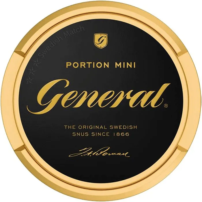 General Mini från varumärket General är Portionssnus med normal styrka och med traditionell smak. General Mini kommer i mini format och varje dosa rymmer 20 portioner. General är tillverkat av Swedish Match.