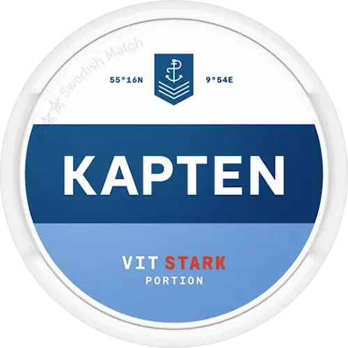 Kapten Vit Stark från varumärket Kapten är White Portion med stark styrka och med frukt och traditionell smak. Kapten Vit Stark kommer i large format och varje dosa rymmer 20 portioner. Kapten är tillverkat av PMI.