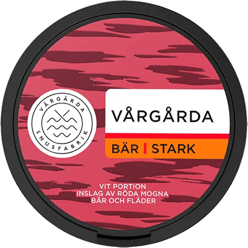 Vårgårda Bär Stark från varumärket Vårgårda är White Portion med stark styrka och med bär och traditionell smak. Vårgårda Bär Stark kommer i large format och varje dosa rymmer 20 portioner. Vårgårda är tillverkat av JTI.