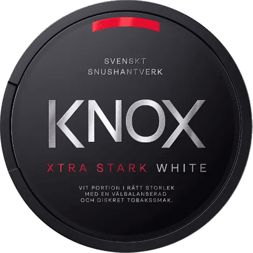 Knox Xtra Stark White Portion är framtagen för erfarna användare som vill ha hög intensitet utan att ge avkall på den traditionella Knox-karaktären. Produkten tillverkas av Skruf Snus och har en hållbarhet på cirka sex månader vid korrekt förvaring.