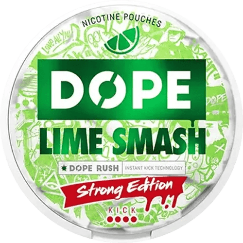 DOPE Lime Smash från varumärket DOPE är vitt snus med extra stark styrka och med citrus smak. DOPE Lime Smash kommer i slim format och varje dosa rymmer 22 portioner. DOPE är tillverkat av Consumer Brands International.