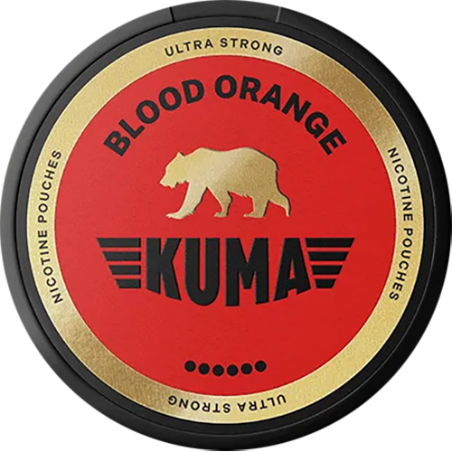 KUMA Blood Orange från varumärket KUMA är vitt snus med extra stark styrka och med citrus smak. KUMA Blood Orange kommer i slim format och varje dosa rymmer 20 portioner. KUMA är tillverkat av Après Nicotine AB.