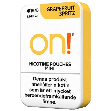 On! Grapefruit Spritz Regular är ett tobaksfritt vitt snus i miniformat med en frisk och lätt syrlig smakprofil. Smaken kombinerar grapefrukt med inslag av vita vinbär, vilket ger en uppiggande citruskaraktär som känns både ren och balanserad under läppen.