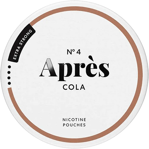 Après Cola Extra Strong från varumärket Après är vitt snus med extra stark styrka och med cola smak. Après Cola Extra Strong kommer i slim format och varje dosa rymmer 20 portioner. Après är tillverkat av Après Nicotine AB.