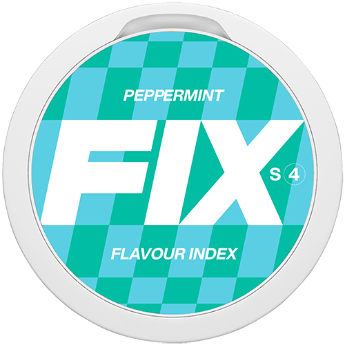 FIX Peppermint S4 från varumärket FIX är vitt snus med extra stark styrka och med mint smak. FIX Peppermint S4 kommer i slim format och varje dosa rymmer 20 portioner. FIX är tillverkat av Habit Factory.