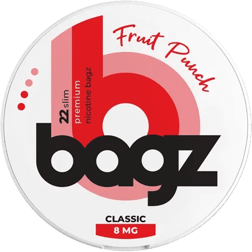 BAGZ Fruit Punch erbjuder en frisk och fruktig upplevelse med en smak av blandade frukter. Portionerna ligger diskret under läppen och levererar en klar och livlig smakprofil genom hela användningen.