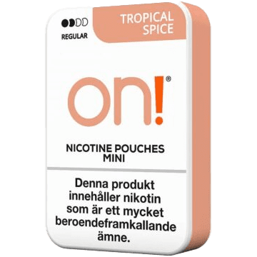 On! Tropical Spice är ett tobaksfritt vitt snus i miniformat med en kryddig och tropisk smakprofil som för tankarna till exotiska drinkar. Smaken kombinerar tropisk frukt med inslag av kanel och en lätt hetta från chili, vilket ger en tydlig men balanserad karaktär.