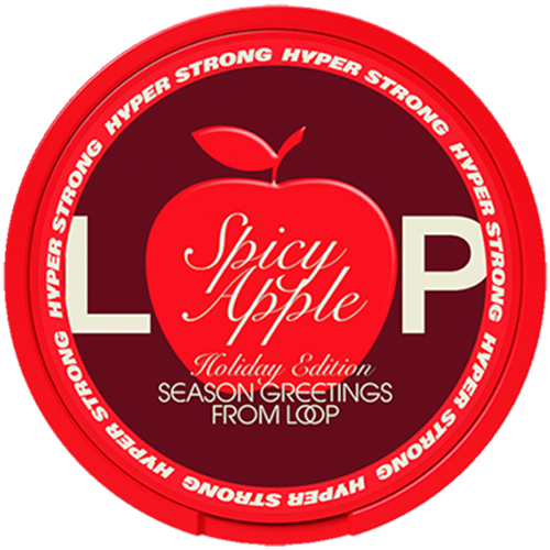 LOOP Spicy Apple Hyper Strong Limited Edition från varumärket LOOP är vitt snus med extra stark styrka och med frukt och chili smak. LOOP Spicy Apple Hyper Strong Limited Edition kommer i slim format och varje dosa rymmer 20 portioner. LOOP är tillverkat av Another Snus Factory.